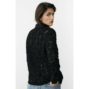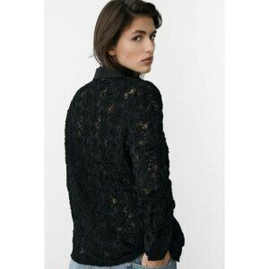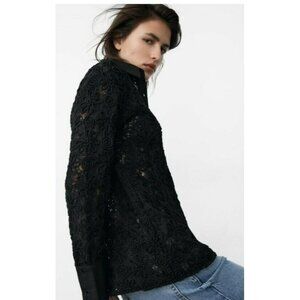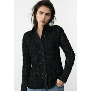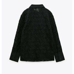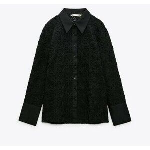 Zara Women’s Black Floral Embroidered Long Sleeve Button Up Lightweight Shirt S
