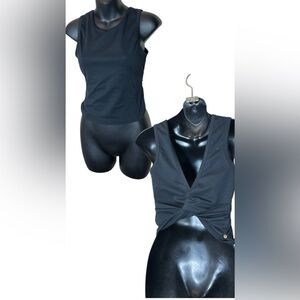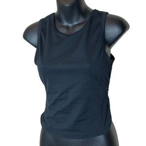 Stylish black crop top. Sleeveless design. Perfect for casual wear.