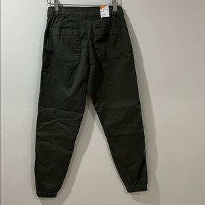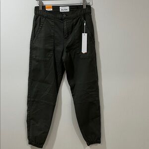 New with tags!! Army green colour jogger (colour is called Thyme) See close up photo for true colour Button with zipper fly and elastic waist on sides Elasticized hems Size 25 Approximate Measurements Waist ~13-15.5 inches Inseam ~27.5 inches Rise -~10.75 inches Fabric- see photos Open to offers