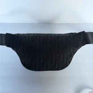 Chic Fendi belt bag in black. Features subtle red accent. Ideal for modern style.