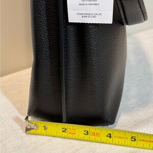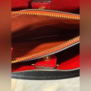 Sleek black leather with a striking red interior. Gold-tone hardware adds a touch of elegance. Ideal for versatile styling. Comes with longer cross body adjustable strap!
