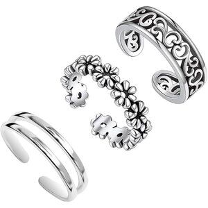 Features: A versatile set of three open toe rings in different widths (4 mm, 4.15 mm, 5.20 mm) made from high-quality sterling silver. These rings are smooth, comfortable, and won’t hurt your toes — ideal for dancing, parties, weddings, or casual wear. They’re stamped with a '925' for authenticity and coated with anti-tarnish polish to keep that shiny finish longer.