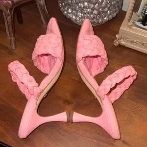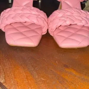 Step out in style with these chic pink braided sandals. Perfect for any occasion, these shoes offer both comfort and elegance. Vibrant pink size 8.5 in great condition.