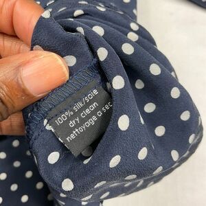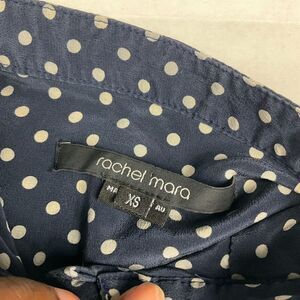Rachel Mara Womens Silk Blouse Polka Dot Button Mandarin Collar Popover Shirt XS