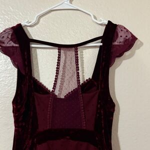 Free people Madeline Sz M Elegant merlot velvet Dress with Lace Details whimsy
