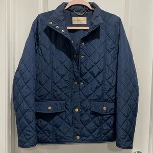 Tory Burch Quilted Jacket in Navy Blue with Gold Accents Size Medium