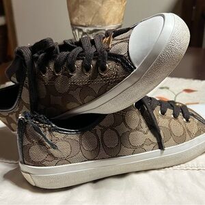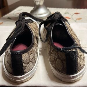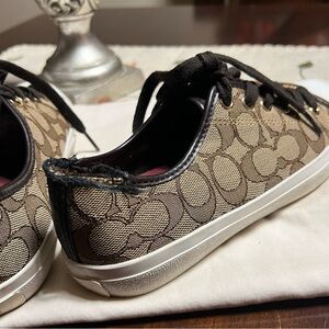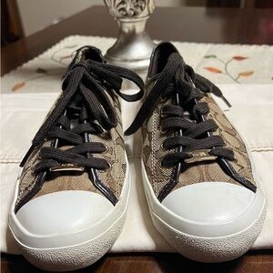 Coach Women's Sneakers with Brown and Tan Design