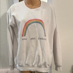 Stay cozy and stylish with this women's white sweater featuring a vibrant rainbow design. Perfect for casual outings and adding a pop of color to your wardrobe.