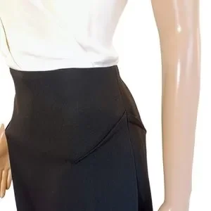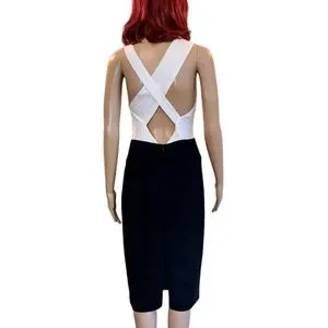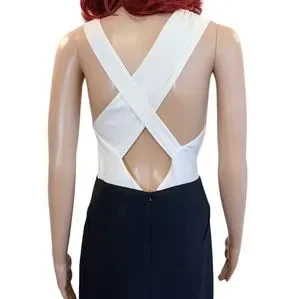 Gorgeous black and white special occasion dress. Asymmetrical bodice with crossed straps in back. Invisible zipper closure in back which zips both ways, from the top or from the bottom.