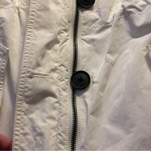 This coat has so many amenities! it zips with a button overlay, the hood has a zipper compartment to make it just a collared coat. Great looking coat all around!