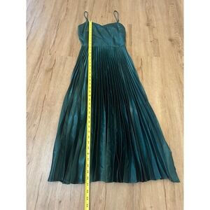 Gianni Bini Satin Pleated Spaghetti Strap Midi Dress Emerald Green Size 0