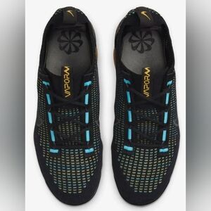 Stylish Nike Vapormax sneakers in black and blue. Features a sleek design with a comfortable fit.