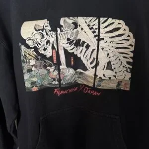 Pre-owned New Franchise LA FRANCHISE X JAPAN Fishman w Skeleton Hoodie Black in great condition. The small sweatshirt measures 19 inches from pit to pit and 23 inches from shoulder to hem.