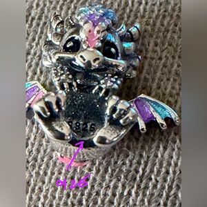 925 Sterling Silver Dragon Wrap Around Charm Enameled Pastel Kawaii Minimalist