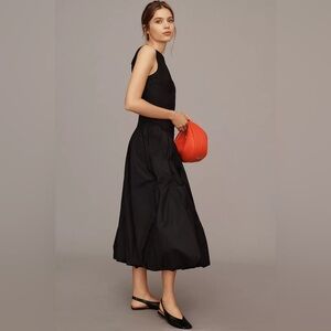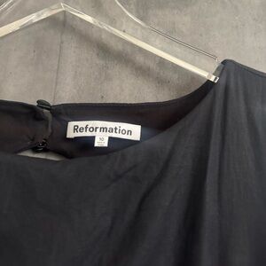 The Reformation Elvira Dress is a midi length dress with a boatneck and an open back. The dress also features a drop waist.