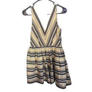J. Crew Metallic Gold & Black Striped Sleeveless Fit & Flare Mini Dress Size 4