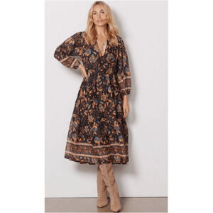 Sundry for Evereve NWT Felicity Floral 100% Cotton V Neck Midi Dress // S
