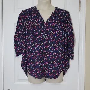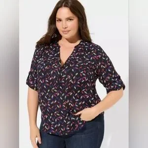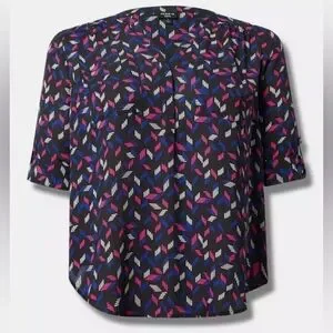 Torrid Black Print Harper 3/4 Sleeve Pullover Blouse Plus Size 1x