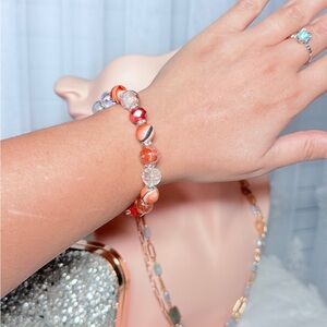 Vibrant bracelet with red and orange beads. Perfect for a bold statement.