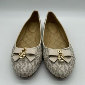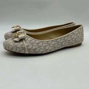 MICHAEL Michael Kors Honey Ballet Flats Vanilla MK Logo Bow Gold Charm Women’s 7.5M NIB