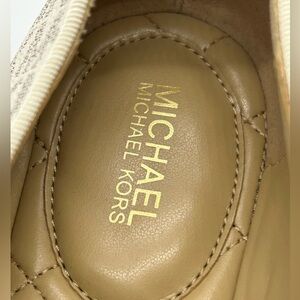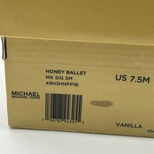 MICHAEL Michael Kors flats, Honey ballet flats, MK flats women, Vanilla MK shoes, logo print flats, designer flats, work flats women, gold logo flats, signature print shoes, size 7.5 flats, new with box MK, luxury flats