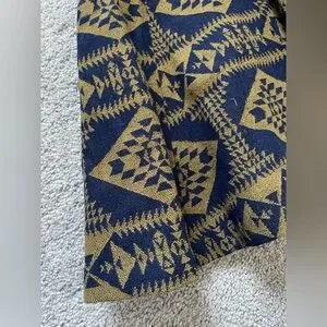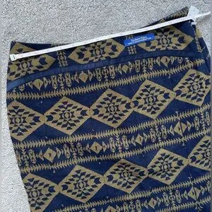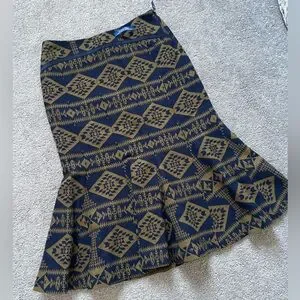 NWT Pendleton Virgin wool Aztec print mermaid midi skirt with bold geometric patterns. This skirt is fully lined and or superb quality, and it’s a classic navy and tan color combo.