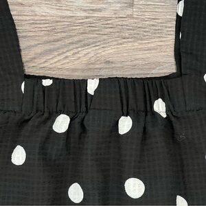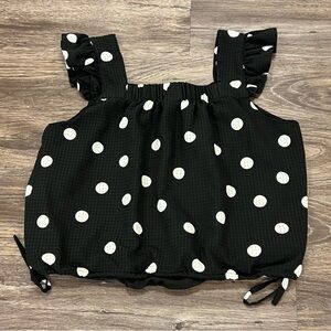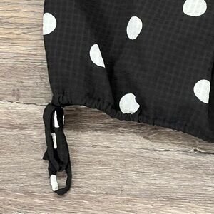 Scoop Women's Flutter Sleeve Black White Polka Dot Top with Tie Hem Size Large