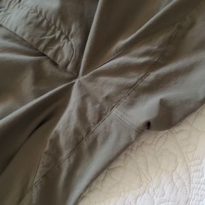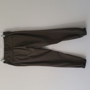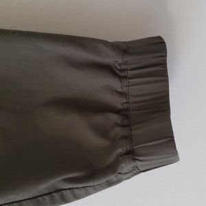 EUC, khaki green jogger pants. Two front/side zippered pockets and two rear pockets. Backside of waistband is elasticated for a comfortable fit. Zippered and snap front closure and gusseted crotch.