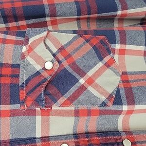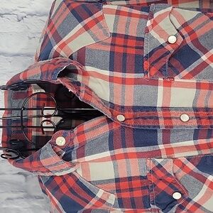 Stylish plaid design. Features Snap pearl front. Perfect for casual wear. Excellent Condition