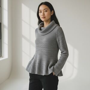 Anthropologie Winterscape Heather KnitCowl Neck Peplum Sweater Gray Knit Small