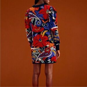 NWT FARM Rio Vintage Forest Blue Sweater Dress