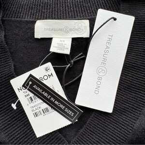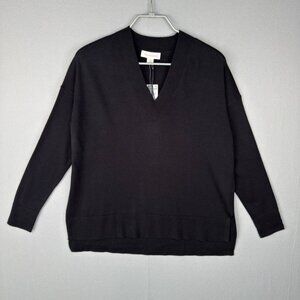 TREASURE & BOND Relaxed V Neck Sweater XS Black High Low Drop Shoulder Tunic New