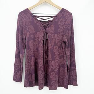 Knox Rose Floral Damask Top S Purple Long Sleeve Boho Lace Up Romantic Feminine