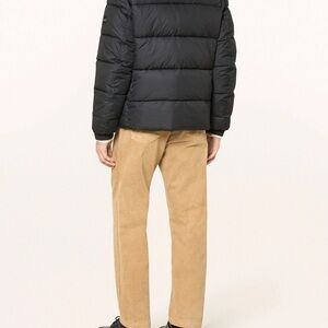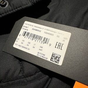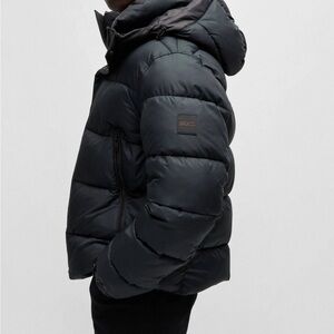 Sleek puffer by Boss. Charcoal hue. Perfect for chilly weather.