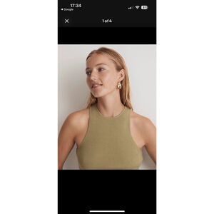 • Madewell Women's Medium Green Signature Knit Cutaway Ribbed Sweater Tank Top