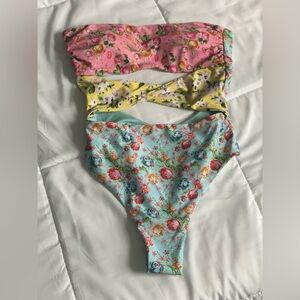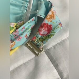NWOT vibrant floral one piece. Features pink, yellow, and blue hues. The bottom is a cheeky fit. This was a gift to me but unfortunately by the time I got chance to wear it, it doesn’t fit. Please see the stock image for how it’s supposed to fit.