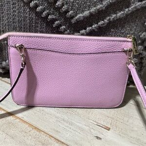 Add a pop of designer color when wearing this beautiful Kate Spade Leila crossbody bag! Top zip and made with pebbled leather.
