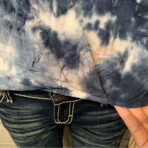 Excellent condition. Tie-Dye Print. Wide sleeves. Blue, white and beige.