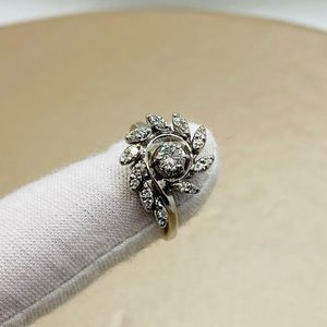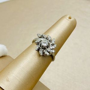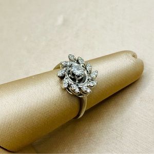 EUC Vintage Platinum Old European Cut Flower Ring w/ Round Diamond Accents