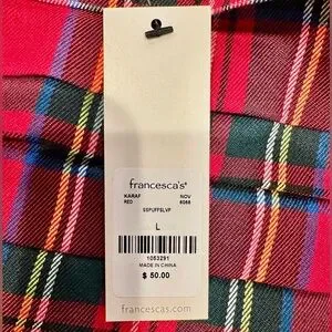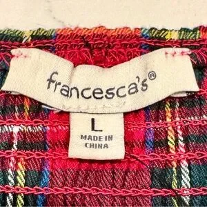 Francesca’s Collections Nicole Plaid Puff Sleeve Pleated Holiday Blouse NWT