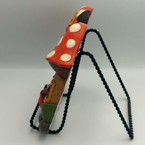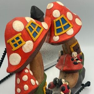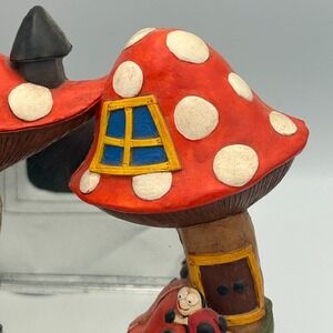 Vintage Chalkware Fairy House Mushroom Ladybug Mirror Red White Wall Juta S '76