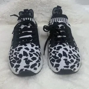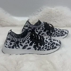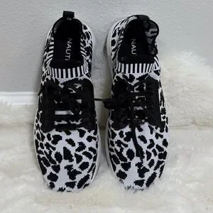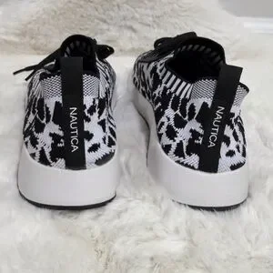 Nautica Leopard Animal Print Sneakers White Black Athletic Shoes, Size 9.5