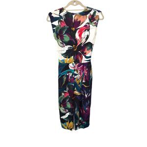 FRANCESCO SCOGNAMIGLIO Floral Waterecolor Italian Knee-Length Dress Sz4