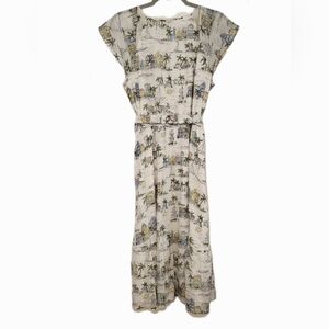 Talbots Ruffle Fit & Flare Dress Scenic Curacao Beach Palm 100% Cotton