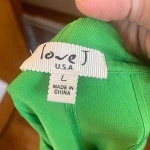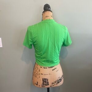 Love J U.S.A Womens Ribbed Casual Short Sleeve Y2K V-Hem Top Lime Green Large