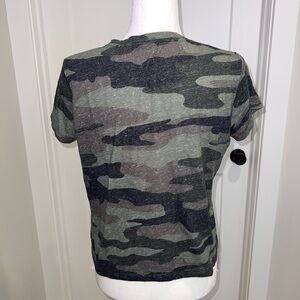 Stylish camo print women's t-shirt perfect for casual outings. Features a comfortable fit and trendy design.