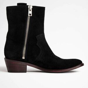 NEW | Zadig & Voltaire Pilar High Suede Western Ankle Boots French 37
