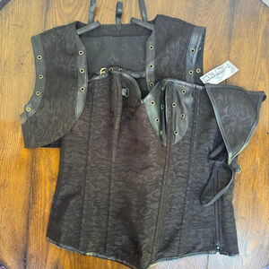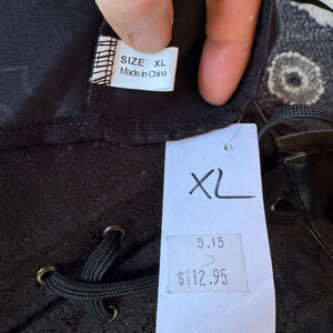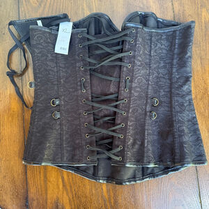 -black corset, NWT size XL. Lay flat measurement across the chest is 17 inches when corset is fully tightened so depending on how much slack you give, will Go several inches bigger.