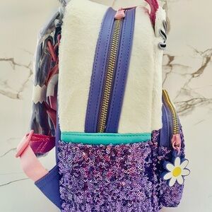 Perfect for Disney fans, this mini-backpack measures approximately 9 inches wide x 10 inches tall x 4 inches deep. It includes a silicone zipper charm and various embroidered, printed, and debossed details for a delightful design. The pink polka dot bow and long purple eyelashes highlight Daisy’s iconic look, making this a fun and enchanting accessory.