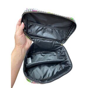 Chic floral cosmetic carrier with a charming bow detail, perfect for organizing beauty essentials. This stylish Betsey Johnson handbag adds a touch of elegance to your daily routine. In very good condition new like in and out with no defects noted. SKU 9523